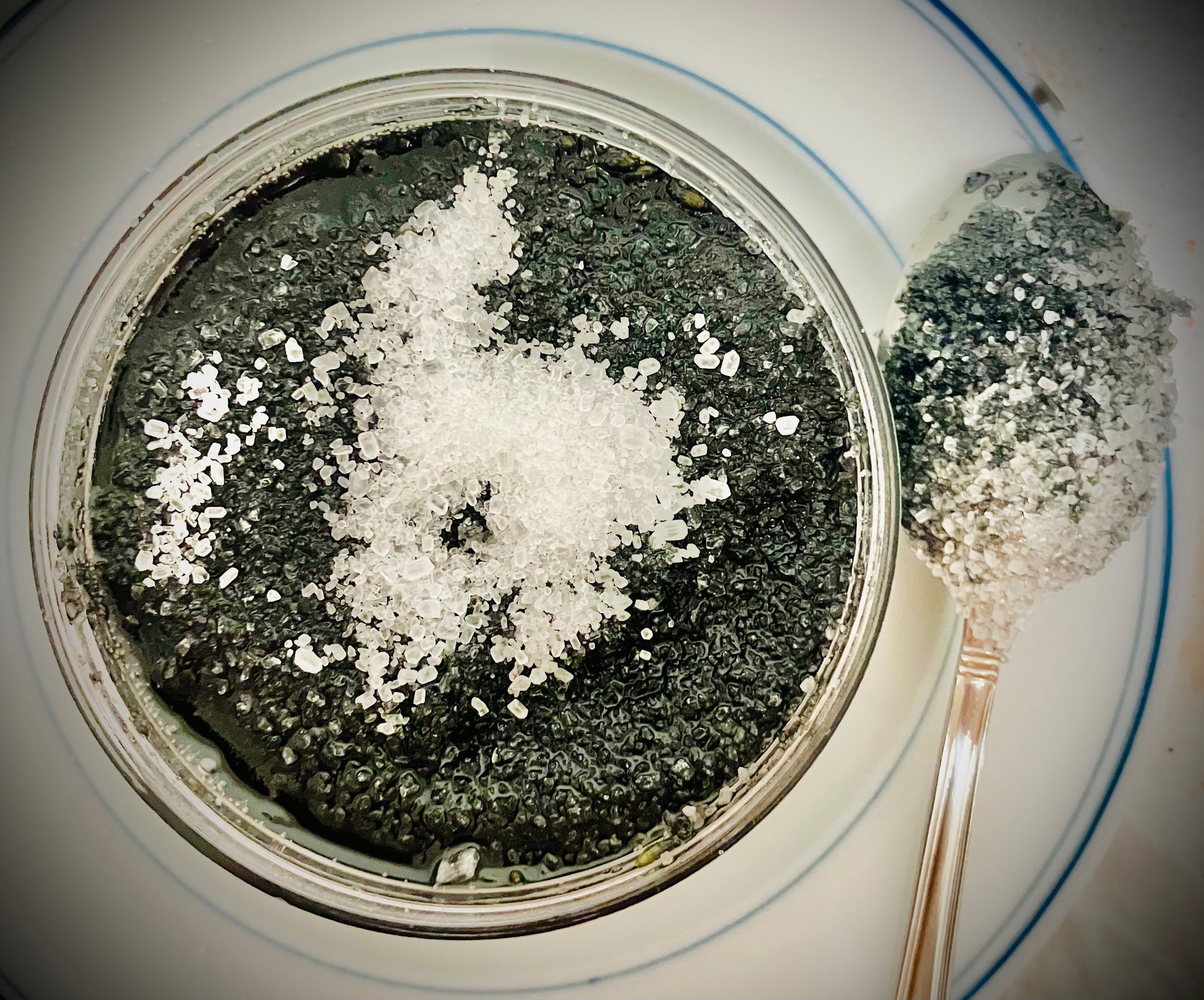 A blend of Eucalyptus, Mint, and Lavender Essential Oil, Pumice Stone Powder, Activated Charcoal, Lavender Infused Fresh Pressed Olive Oil, Castor Oil, Coconut Oil, and Shea Oil, Epsom Salt, and Dried Lavender. Benefits : Exfoliating . Detoxing . Calming . Soothing. * Leave on for 15-20 minutes as a mask treatment, then scrub foot thoroughly before cleansing off.