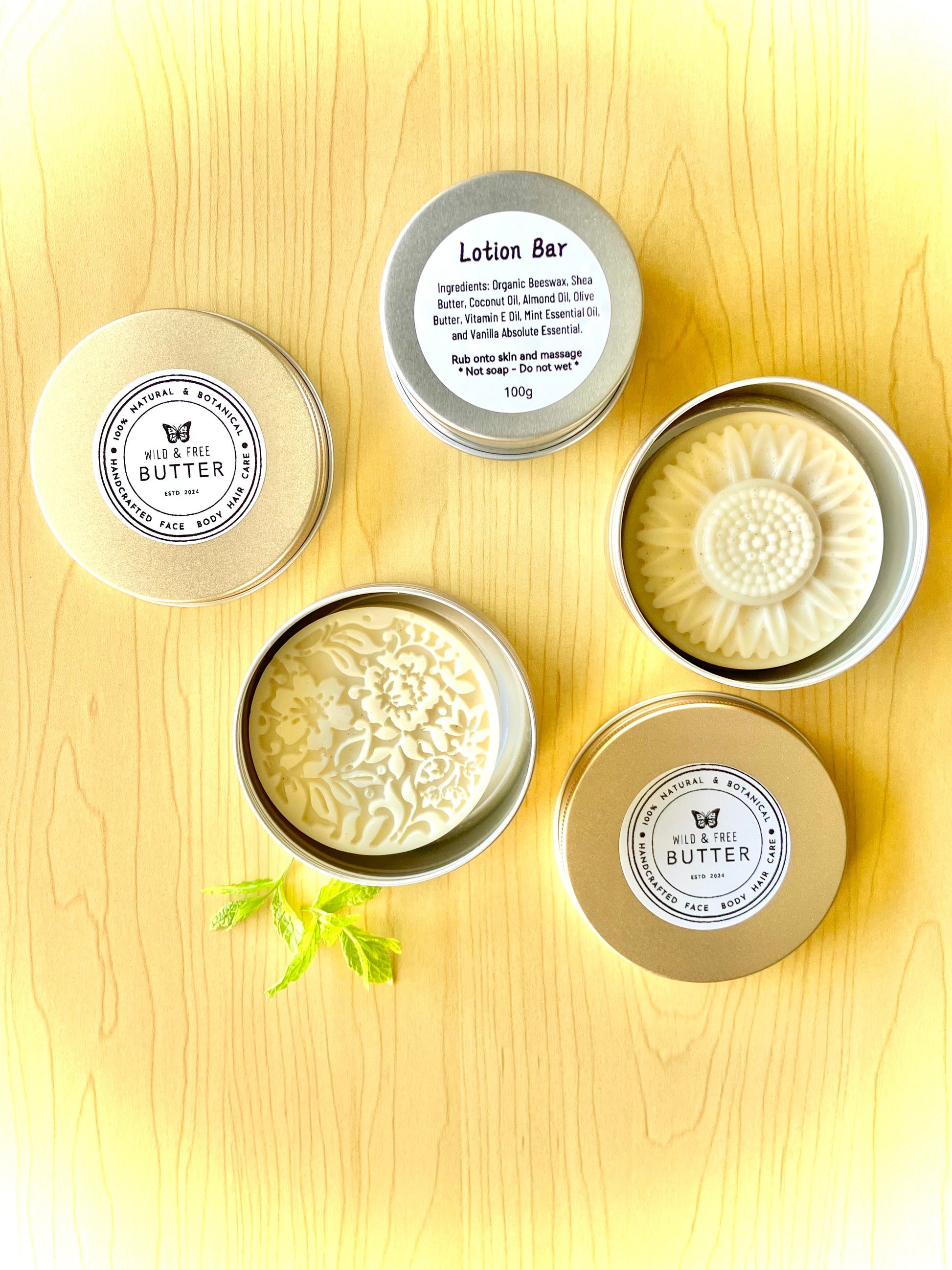Handmade lotion bar with nourishing oils and butters such as: Almond & Coconut Oil, Shea & Olive Butter, Healing Organic Beeswax, Mint Essential Oil, and Vanilla Absolute Essential. To apply: rub onto skin and massage. This is not soap, do not wet. * keep in a cool dry place, or can be refrigerated. * prone to melting more if kept in the sun or heat. *